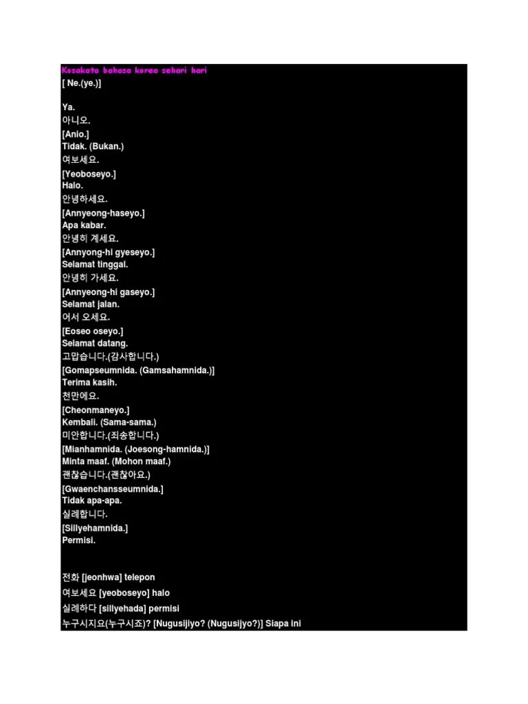 Kosa kata bahasa korea dan artinya pdf. Terdapat 2 file untuk didownload karena jumlahnya yang terlalu besar jika dijadikan 1. Apa kabar (pertama kali : Namun bagi siswa umum juga bisa belajar dengan buku ini. Daftar kosakata persamaan kata bahasa korea dan artinya pdf.